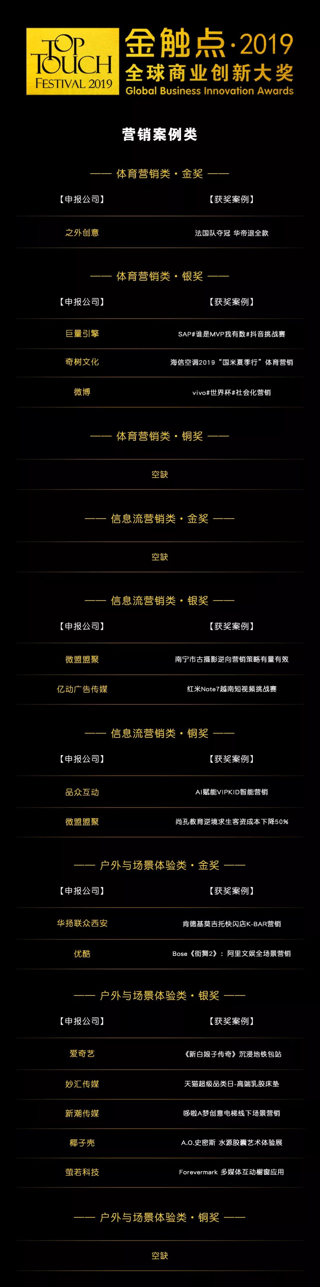以下是金触点·2019全球商业创新大奖归属情况: