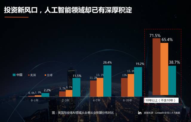 最后,王迪现场还带来了一份全球AI领域的人才报告,其中有三个核心发现:一,虽贵为投资新风口,但人工智能领域却已有深厚积淀;